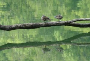 隣の鶏頭場の池。鏡のような静かな湖面。