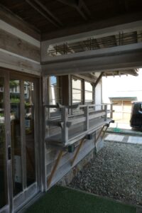 右上の写真の二階部分の手すりの出っ張りが気になる。もともと二階窓の下にあったものが改装でずれたのか、それとももともとから装飾用だったのか。