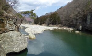 塔のへつりは川沿いに奇岩の立ち並ぶ景勝地だ。へつりというのは川に突き出した断崖のことをいう方言だそうだ。