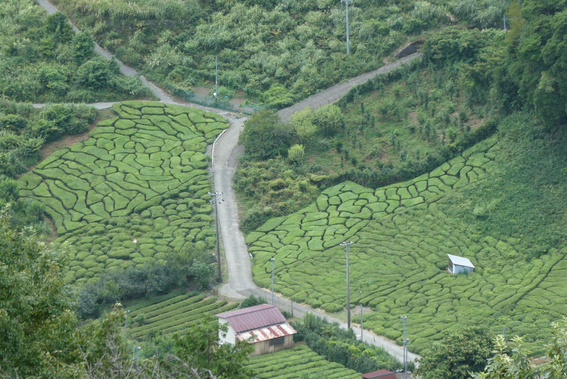 いろいろと魅力的な名前をつけて宣伝しておられる茶畑。小高い山の上から見る景色はたしかに美しい。観光客が大勢来ておられて驚いた。