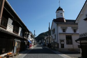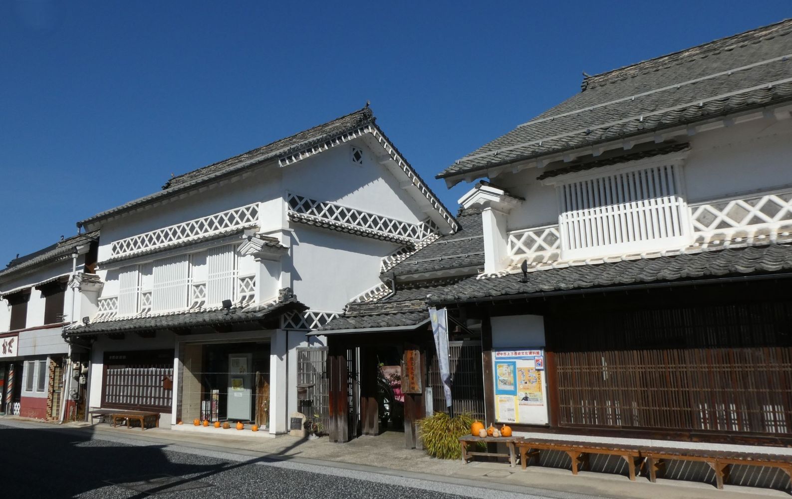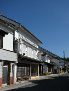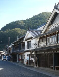 石見銀山街道は石見銀山から笠岡や尾道まで陸路で銀を運んだ道だ。上下はその石見銀山街道の中継地として栄え、幕府の天領でもあった。今でも白壁の町並みと呼ばれている通りには当時の栄華を伝える立派な商家が立ち並んでいる。