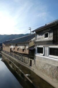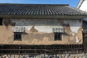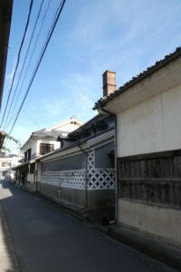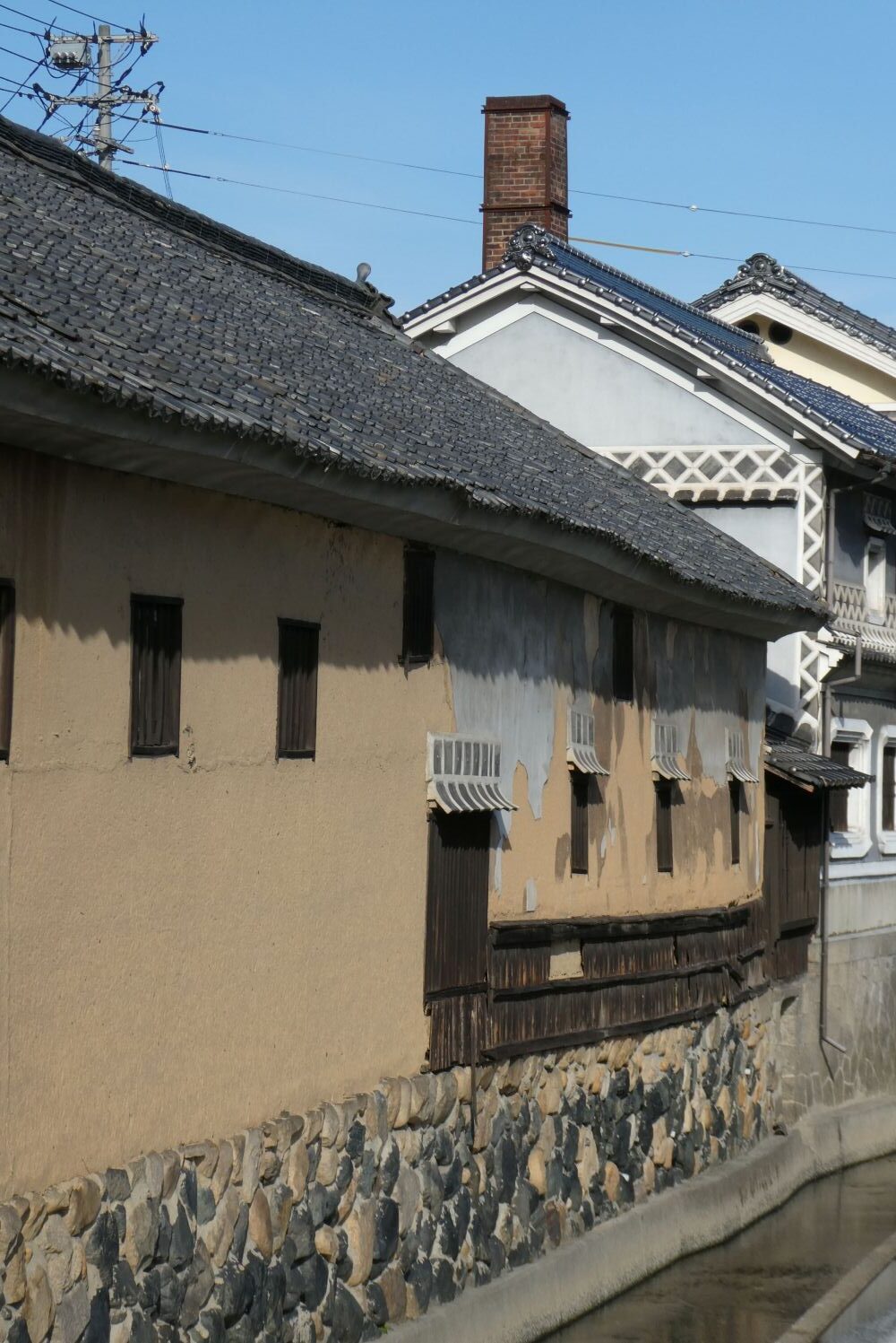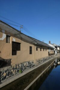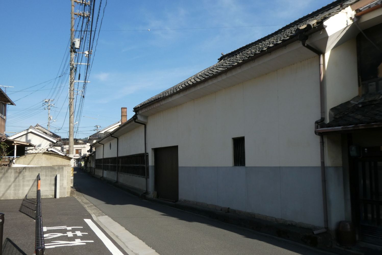 醬油蔵の反対側は美しい長い白壁になっていた。