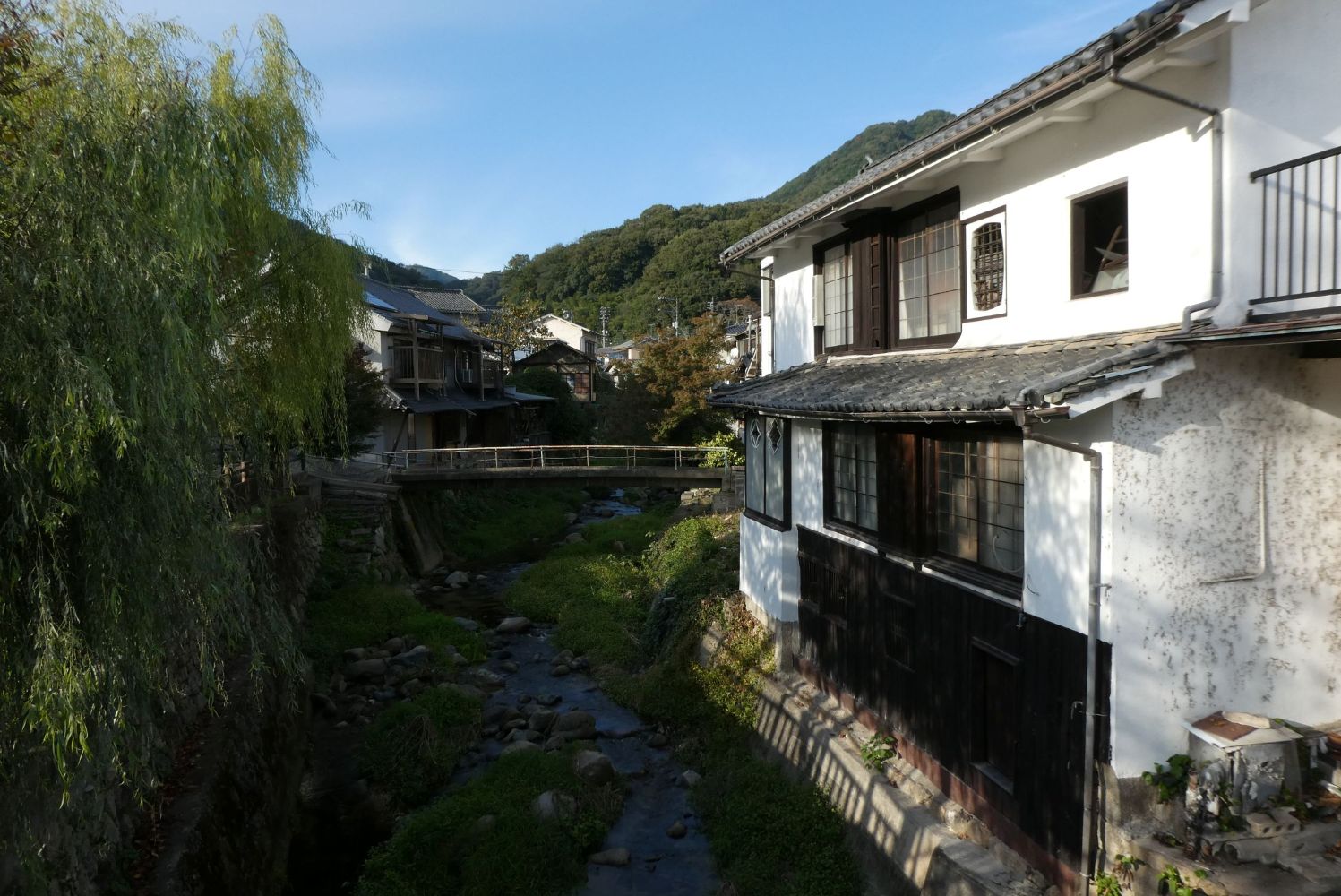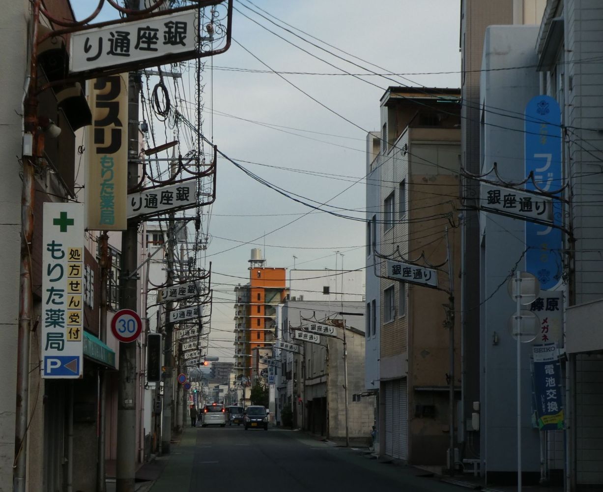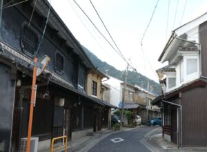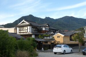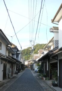 狭い通りにいかにも街道筋らしい町並みが続く