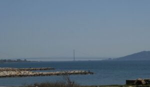 江井ヶ島海岸から明石海峡大橋を遠望する。