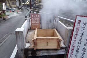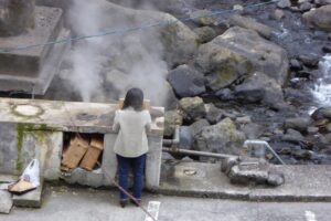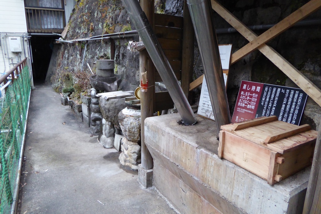 蒸し場と呼ばれる温泉の蒸気を利用した天然の蒸し器があちこちにあった。