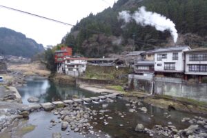 2014年12月。 杖立温泉。 熊本県小国町下城。