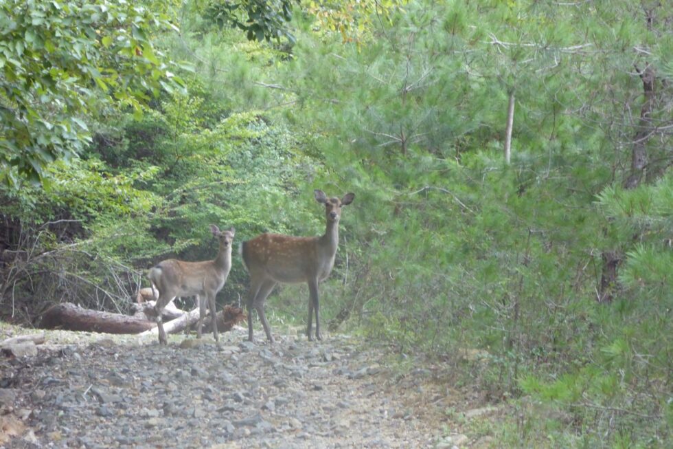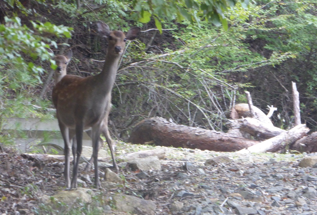 2015年9月。 るり渓で野生の鹿と遭遇。 京都府南丹市園部町大河内。
