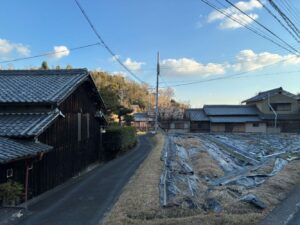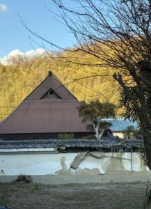 精華町乾谷は周りを新興住宅地に囲まれた旧村だ。トタンをかぶせた藁葺きの民家がまだ残っている。