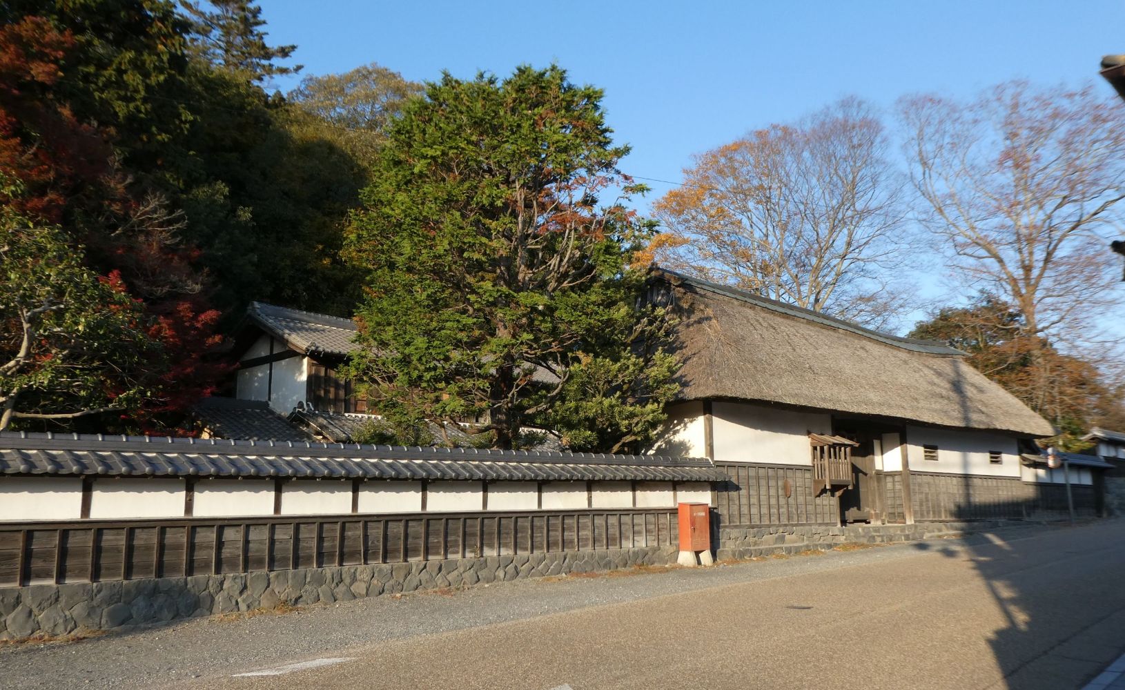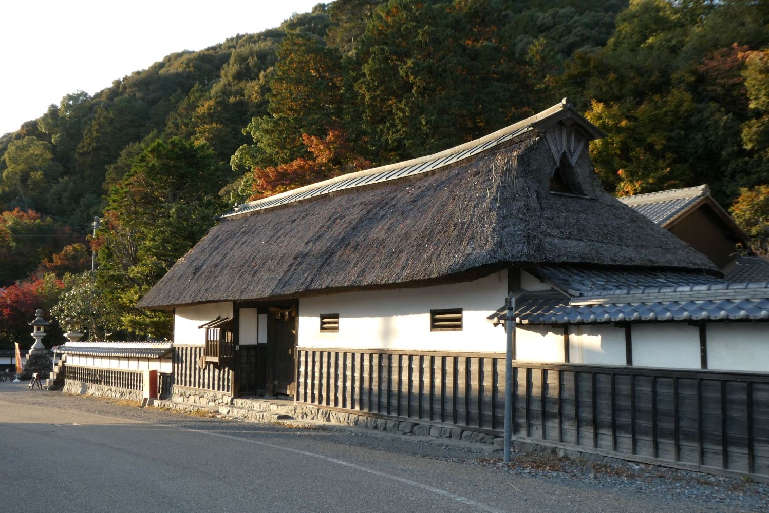 多度大社の入り口には藁ぶきの長屋門があった。