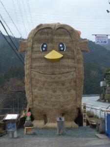このあたりでは毎年稲わらの巨大なモニュメントが作られるが、2021年はコロナの鎮静化を願ってアマビエだった。