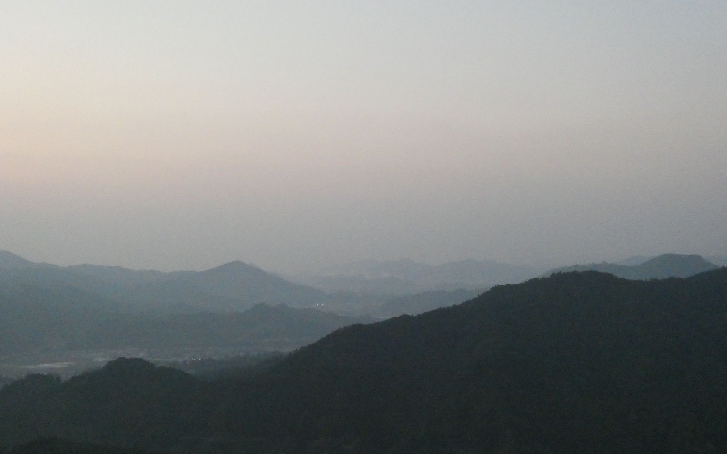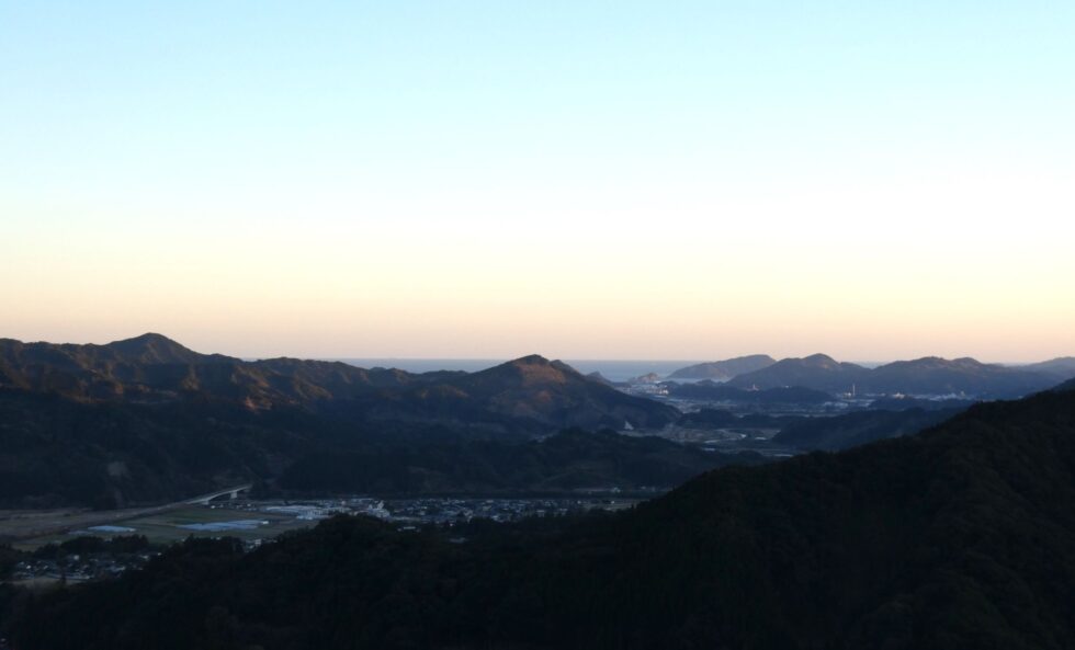 2026年2月。 宮崎県日南市北郷町郷之原付近の山から北郷の町を見下ろす。
