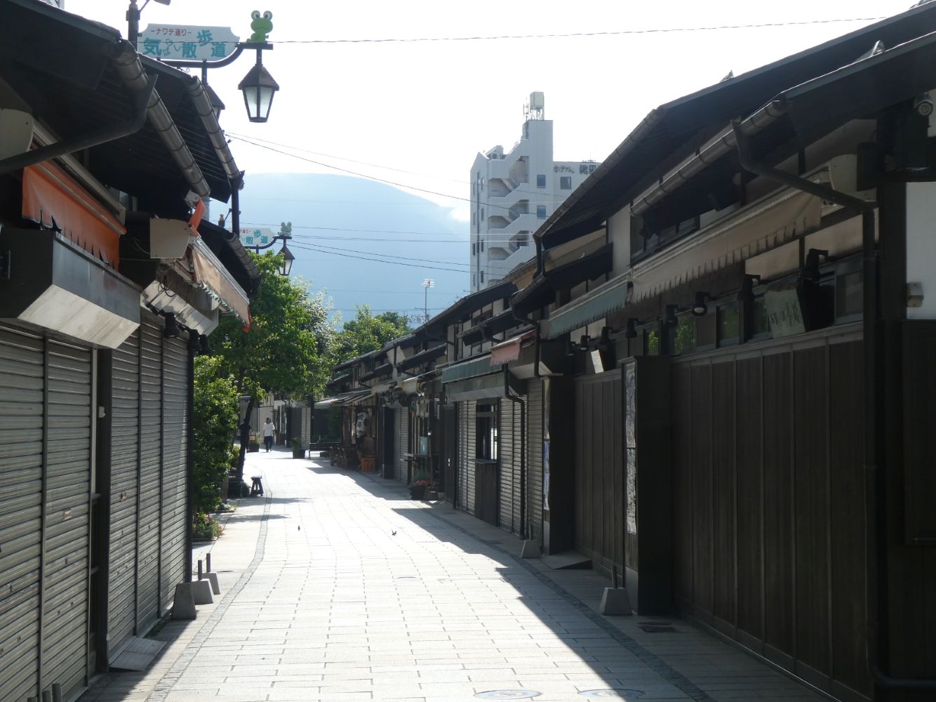 繩手通り。写真を撮ったときは早朝だったのでお店は全部閉まっていたが、後で通ると開いていた。シャッター通りではありません。