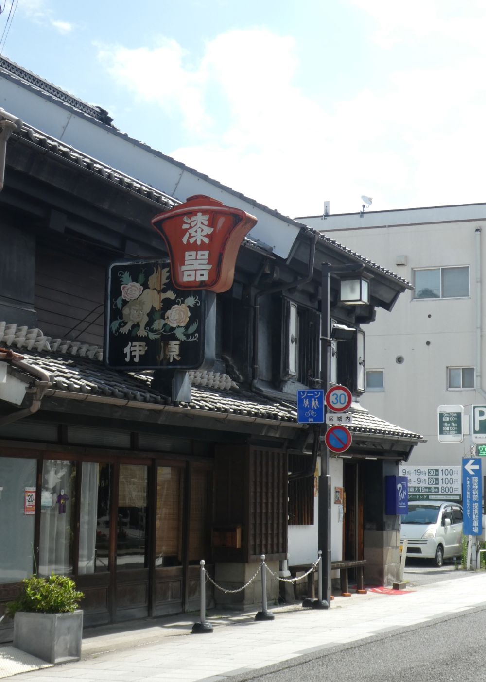 蔵造りのお店が並ぶ中町通り。伊原漆器店はそのままだった。