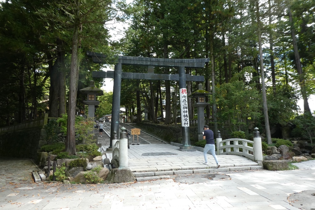 秋宮の鳥居からは町を見おろすかたちになる。