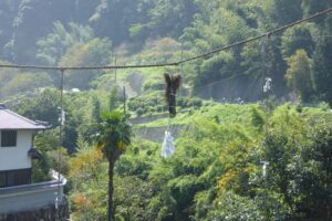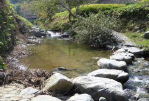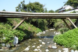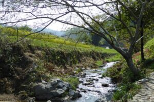 稲渕の村にはきれいな川が流れていて、飛び石も残っていた。そこを歩くと美しい小川の風景がひろがっていた。子どものころ、夏の間は毎日ほど川で遊んでいた私にはとても懐かしい風景だ。泳いでいる魚も懐かしい。