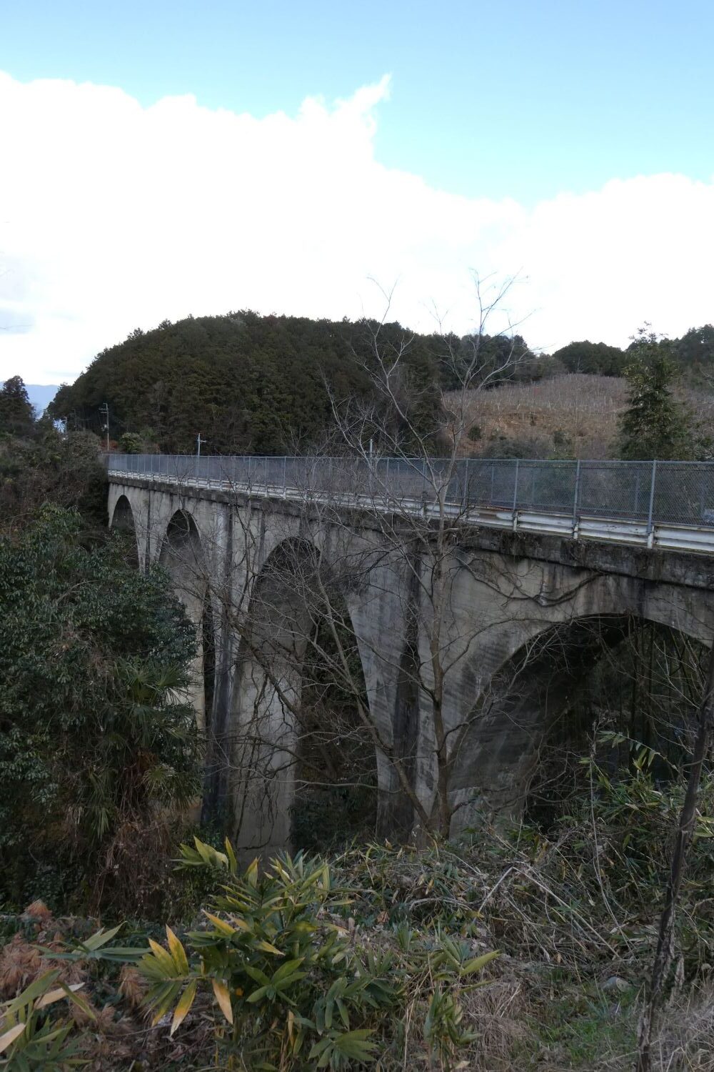 谷をまたぐ高架橋とその上の専用道