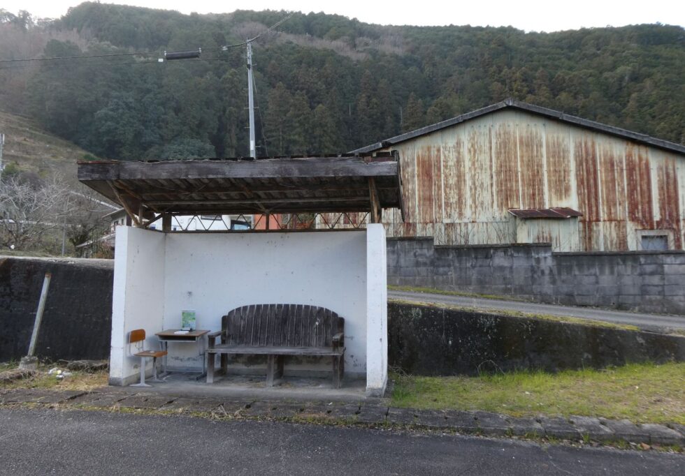 2026年1月。 五新線バス専用道、生子バス停跡。 奈良県五條市生子町。