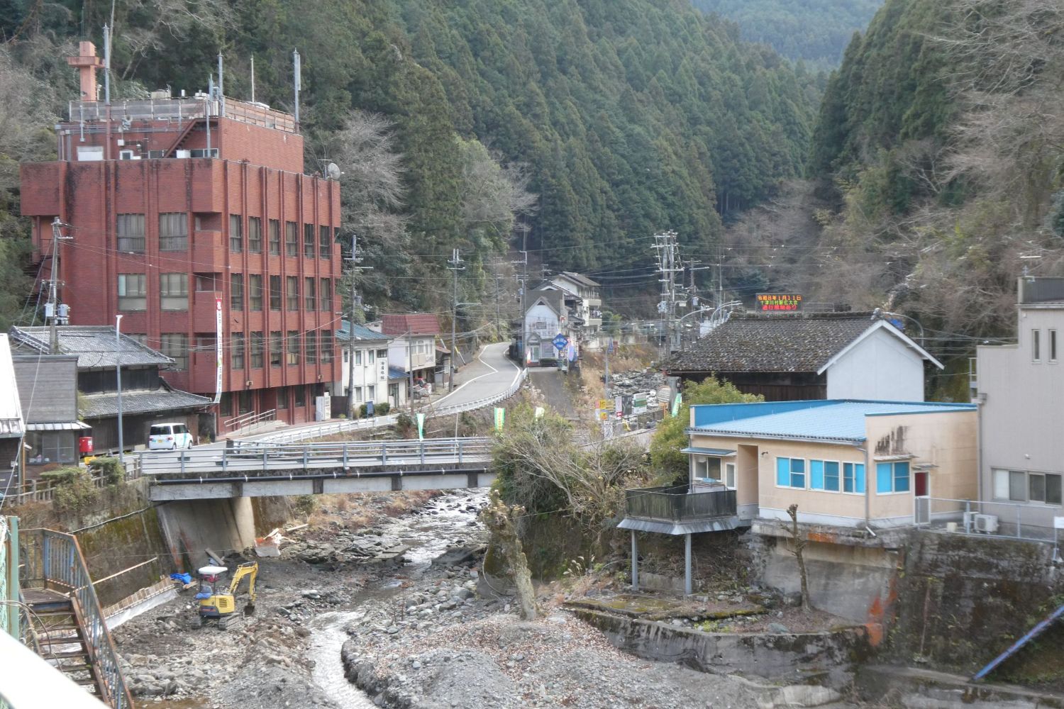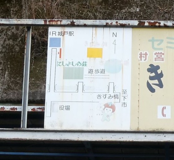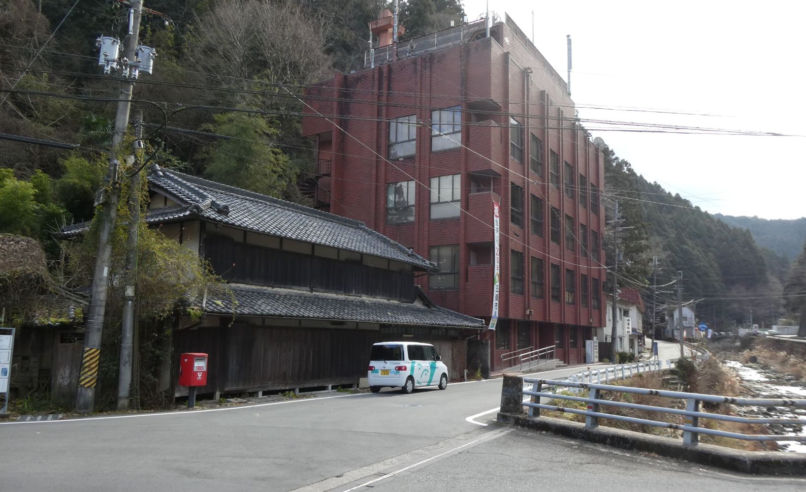 幻の五新線の軌道を専用道として国鉄バスが走っていた時期があるそうだ。その頃の城戸駅の場所に奈良交通のバス停がある。バス停は専用道城戸だが、バスは専用道ではなく国道168号線を走っている。