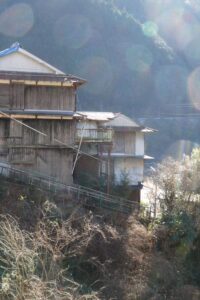 民家は山の斜面に建てられているので、何階建てかよくわからない家が多い。