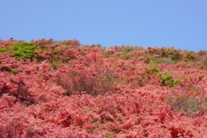 葛城山は奈良県御所市と大阪府千早赤阪村の境にある。ツツジの時期には山頂付近は赤く染まり美しい。ロープウェイで簡単に登ることができる。歩いて登る人も多い。私は根性がないので下りだけ歩きました。