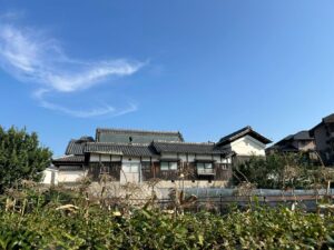 中本酒造からは少し離れたところにある集落に茅葺の大和棟の建物が残っていた。