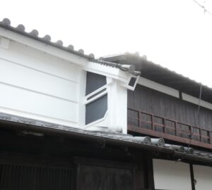 うだつと袖壁が合併したような形。橿原市近辺ではときどき見かける。