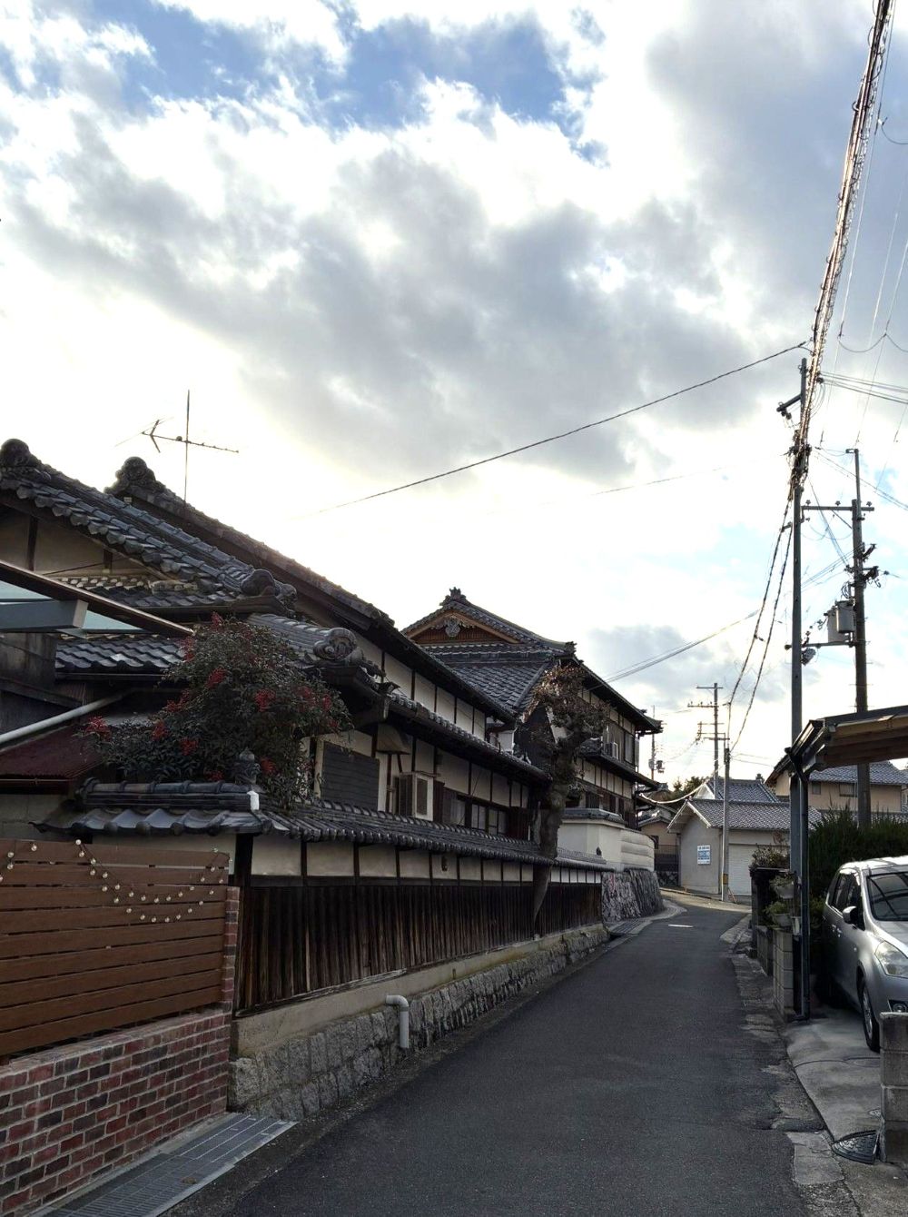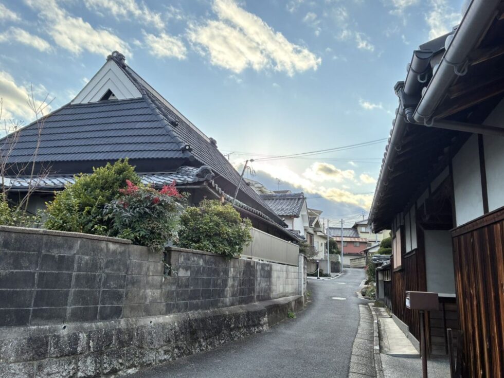 中山町では幹線道路沿いに多くの商業施設が立ち並んでいるが、一歩中に入ると昔ながらの農村の住宅地が広がっている。