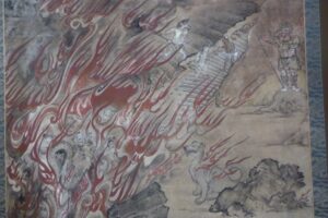 秋に開かれる地獄絵図の展覧会の準備をしておられるところだった。特別にみせてもらった。