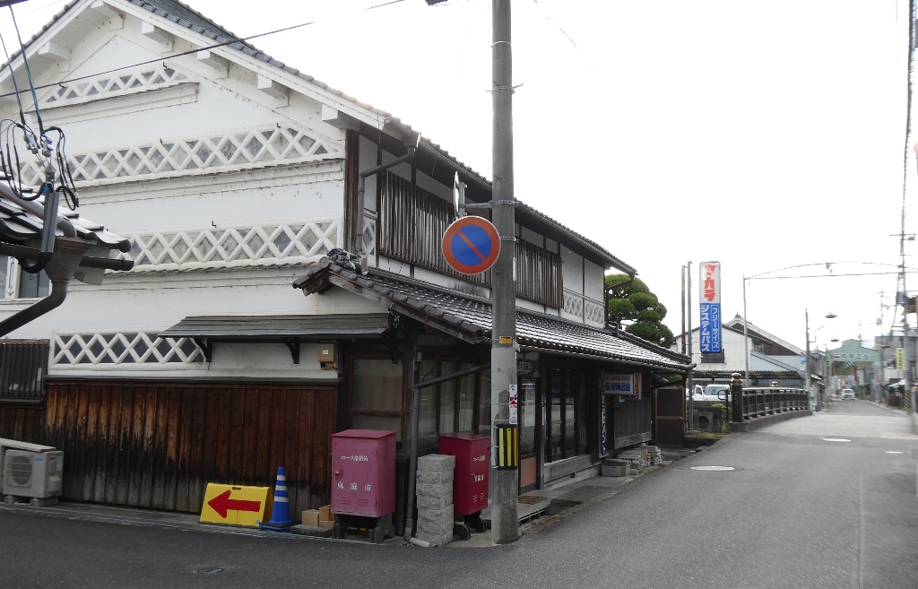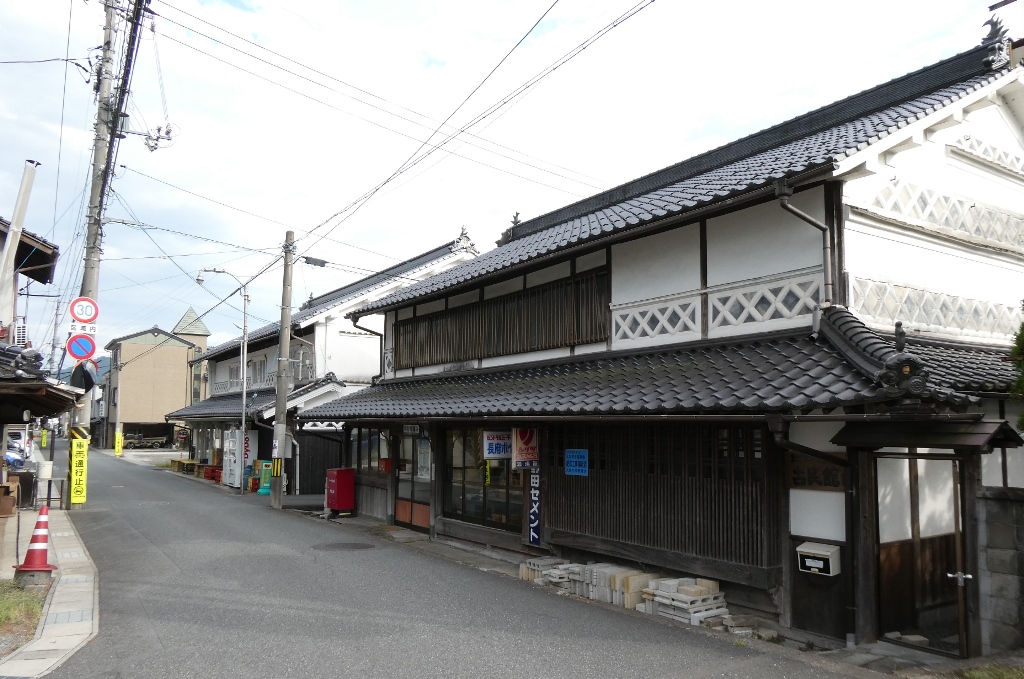 久世の町の古い町並みはJR久世駅から遷喬小学校に向かう道に大きな民家が数軒並んでいる。そことは別に出雲街道沿いの昔の商店街に古い町並みが残っている。駅から遷喬小学校に向かう通りは(1)にまとめた。こちらの(2)では出雲街道沿いの町並みを紹介したい。