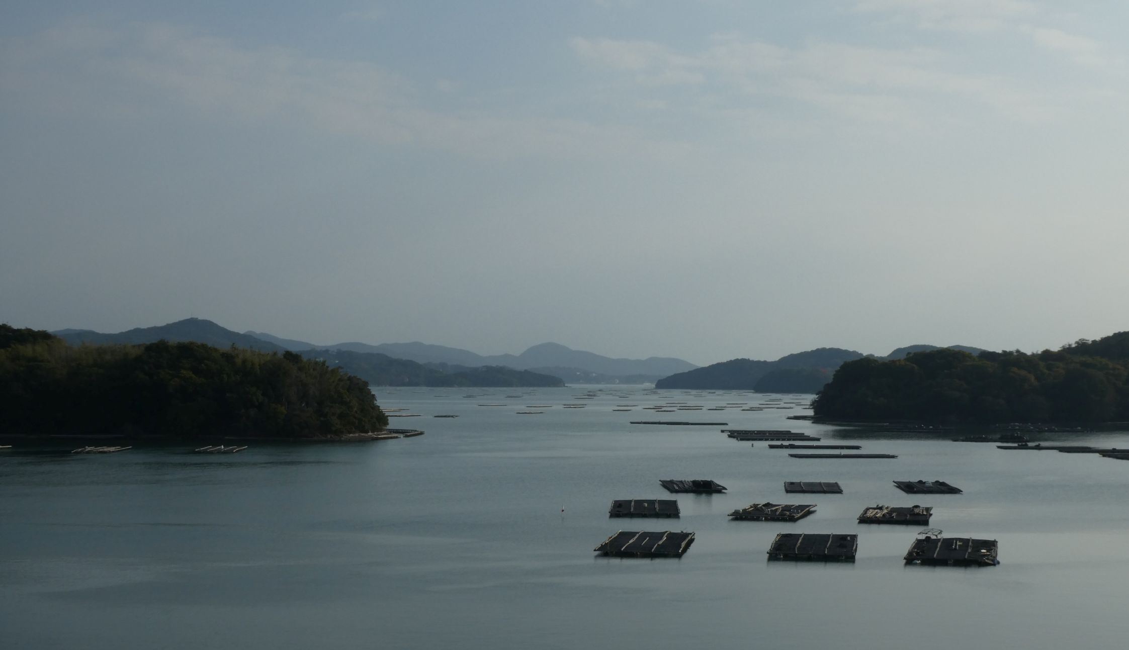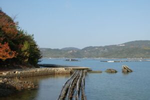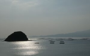本土からの船はこの桟橋に着いた。現在はカキの養殖に使われていた。