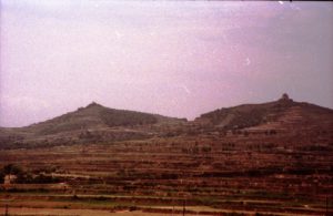 茂陵そのものはピラミッドを上から叩いてへこませたような形。陵の上に登ると、周りに同じような陵がいくつも見える。どの陵でも人々は上に登ることができる。バスを降りた連中は皆料金のうちと思うから登っていくが、別に何があるわけでもない。(1984年)