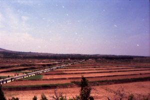 東アジアの風景は、やはりよく似ている。おそらく何十年か前までは日本でもこのような光景を見ることができたにちがいない。段々畑をぬって通る農道。広大な農地。果てしなくどこまでも続く田んぼには中国の広さを感じる。農家の建物は視野のどこにもない。一体どこからこの広い田んぼを耕しに来るのか不思議である。(1984年)