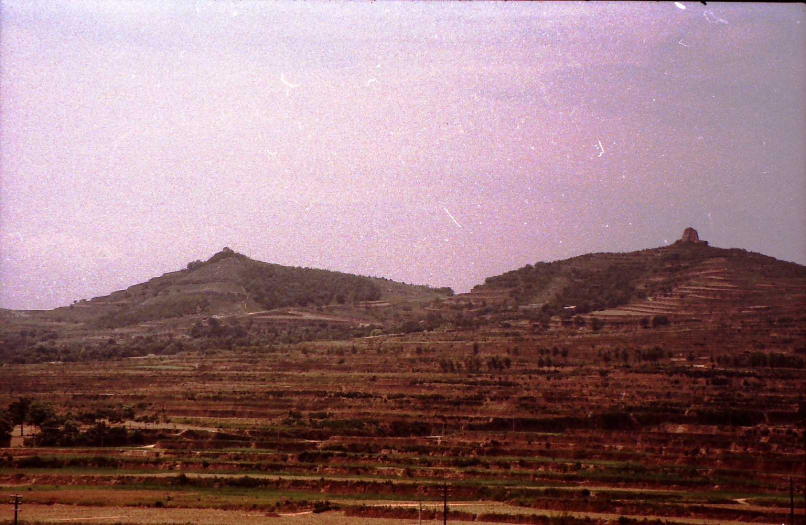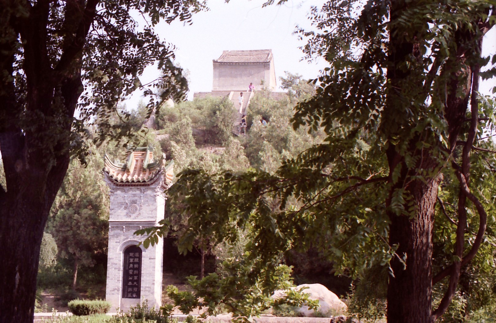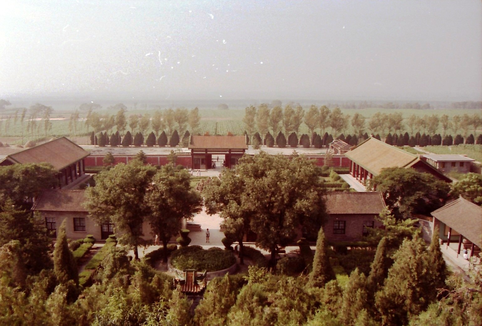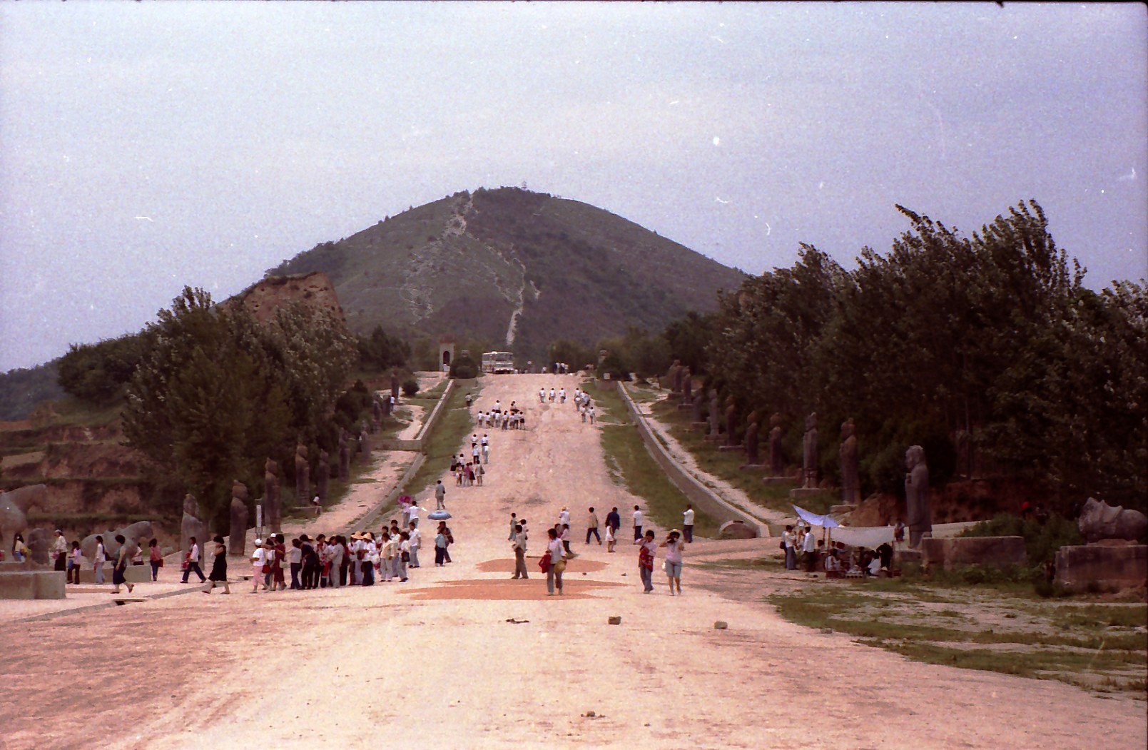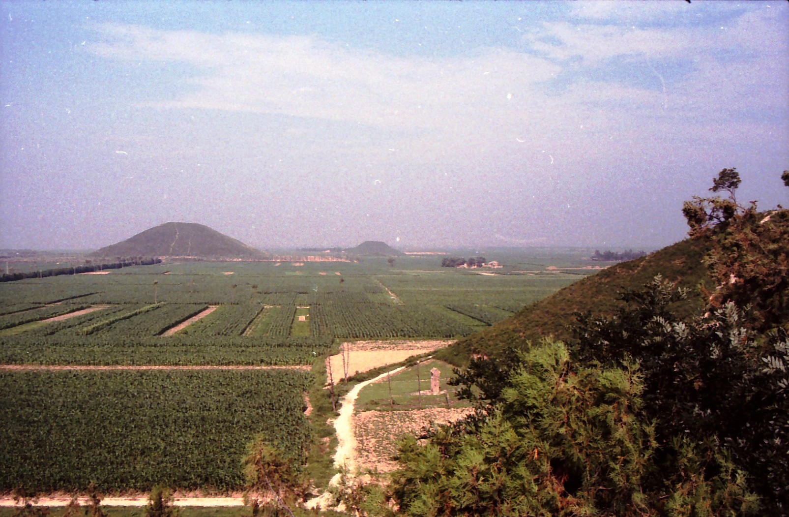 茂陵そのものはピラミッドを上から叩いてへこませたような形。陵の上に登ると、周りに同じような陵がいくつも見える。どの陵でも人々は上に登ることができる。バスを降りた連中は皆料金のうちと思うから登っていくが、別に何があるわけでもない。(1984年)