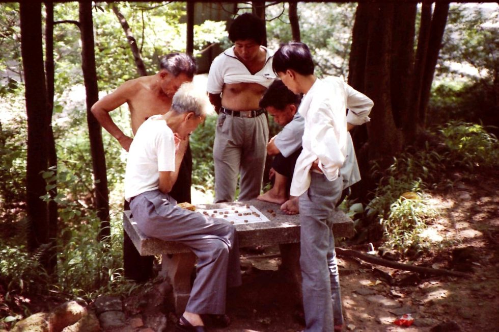 越秀公園は市民の公園だが入場料が要る。わずかなものだが、お金が要るとなると人は少ない。入場券の定期券を売っているのには驚いたが、それは老人たちのためだったらしい。あちこちの木陰で老人たちがトランプや将棋を楽しんでいる。それを取り巻いて見物している暇人たちは比較的若い。(1984年)