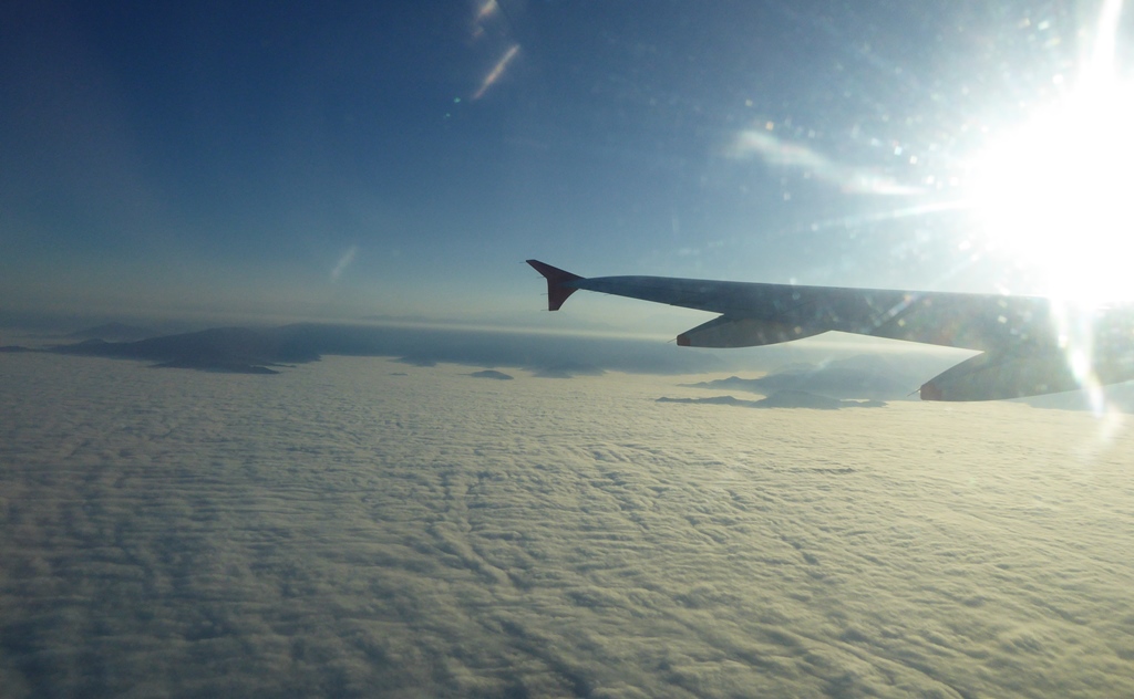 飛行機の窓から写真を撮ることはあまりない。そもそも通路側の席を取ることが多いので、窓側の席に当たることがない。この時は珍しく窓側の席だったので何枚か撮った。