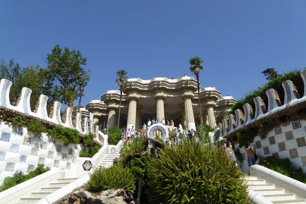 バルセロナ旅行の目的はほとんどの人がそうだと思うがガウディゆかりの地を巡ることだった。グエル公園はグエル伯爵が作り上げたものだ。もともとは分譲住宅の予定だったそうだが、まったく売れず、後に公園となった。