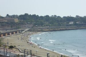 ビーチがあって大勢の海水浴客でにぎわっていた。