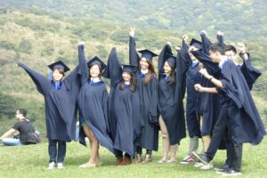 2015年3月。 陽名山で卒業アルバム用の記念写真を撮影する大学生たち。 台湾台北市陽名山国家公園。
