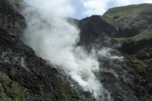 火山でもあるので、あちこちから煙が噴き出している。