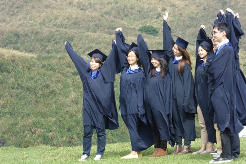 2015年3月。 陽名山で卒業アルバム用の記念写真を撮影する大学生たち。 台湾台北市陽名山国家公園。