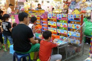 ゲームの屋台もたくさんある。大人もやってみたくなるようなものが多い。2012年
