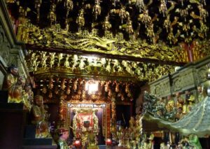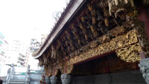 老街のすぐ近くにある清水祖師廟。見事な装飾が施された寺院でいつも賑わっている。