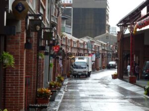 レンガ造りの商店が立ち並ぶいかにも台湾らしい老街が残っている。1999年8月に初めて訪れたときは、まだそれほど観光地化されておらず、素朴な老街だった。