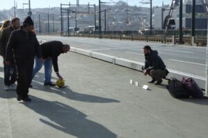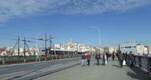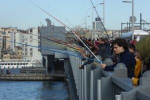 ガラダ橋は二階建ての可動橋だ。大勢の釣り人が糸を垂れていた。