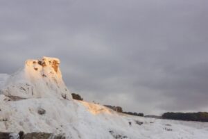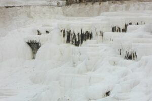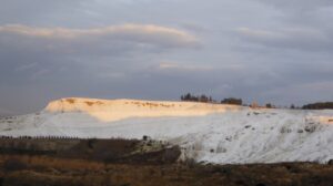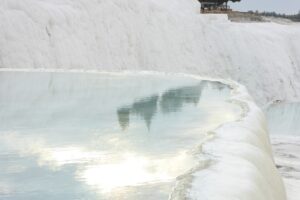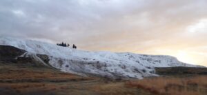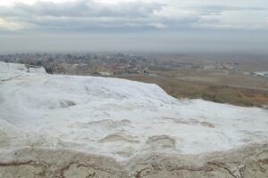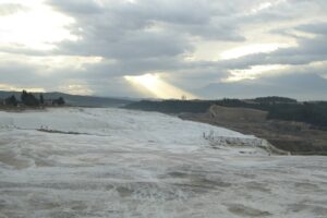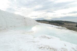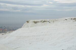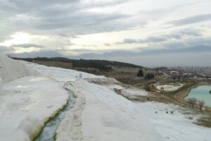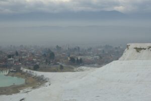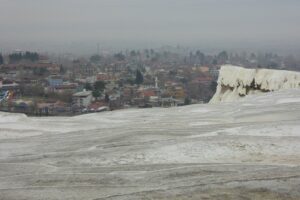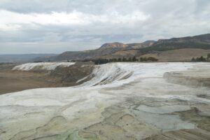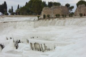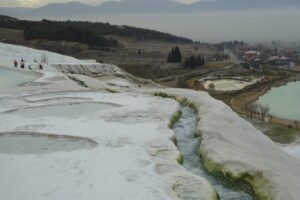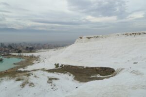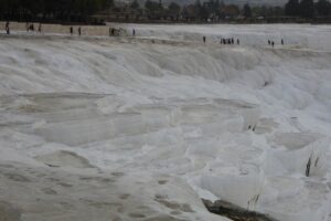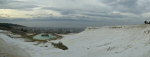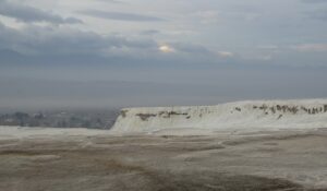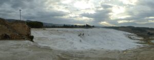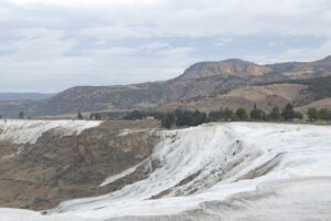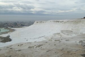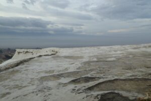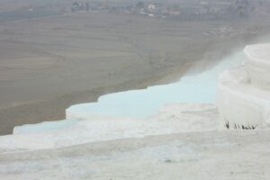 パムッカレ。天候の加減か、水の量の関係か、残念ながら水色の水面が並ぶ絵はがきのような光景は見られなかった。