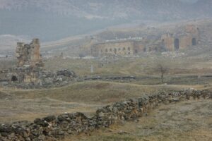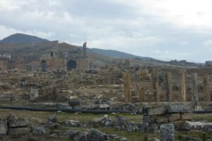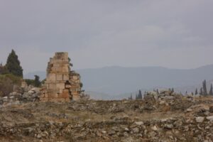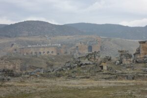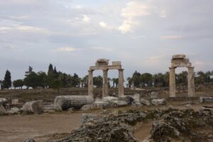 ヒエラポリスはパムッカレの石灰華段丘の上にあるローマ時代の遺跡だ。