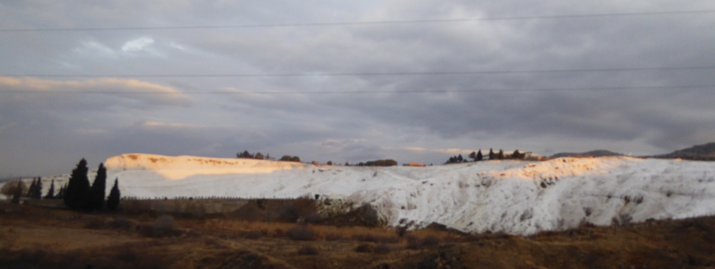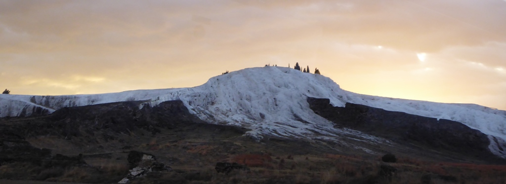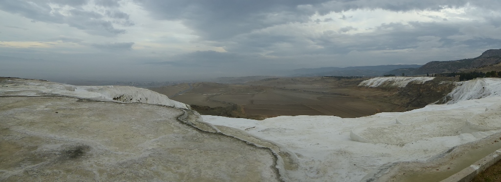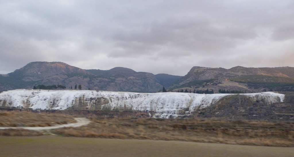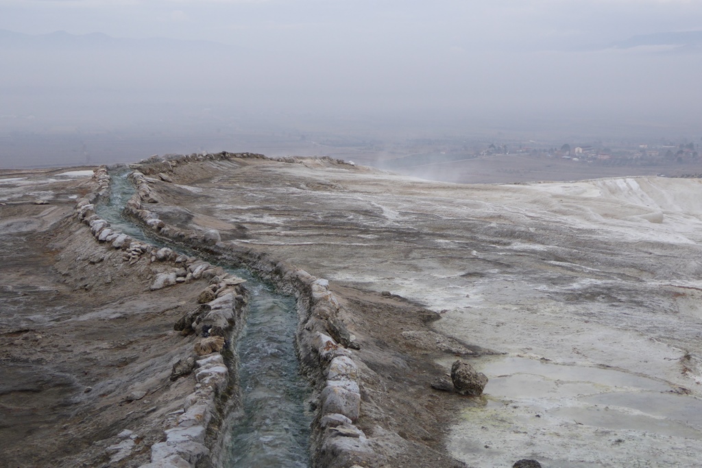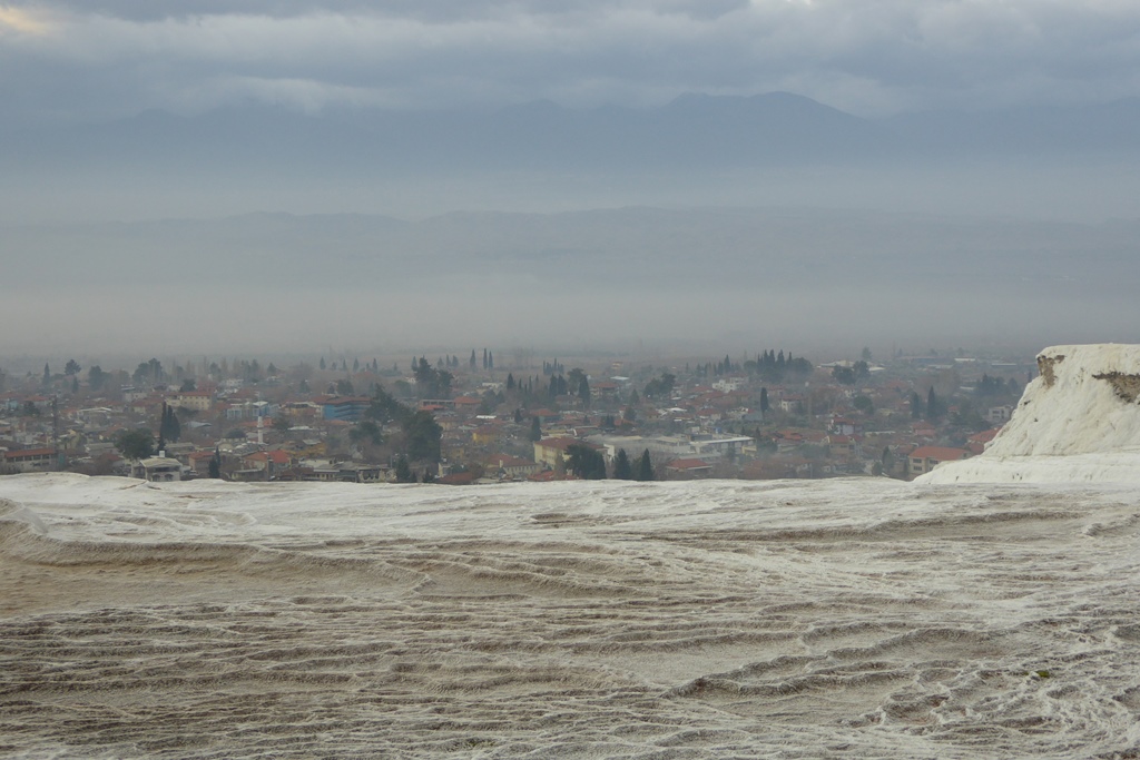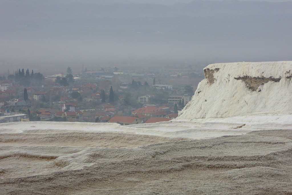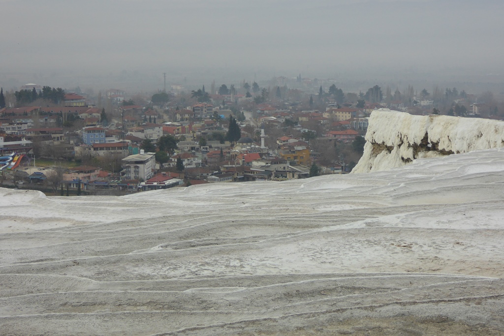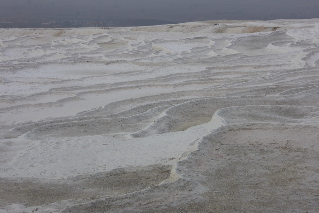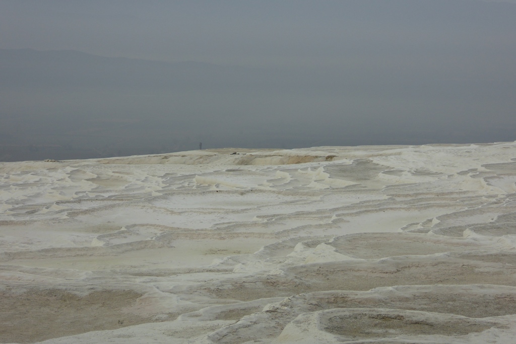 パムッカレ。天候の加減か、水の量の関係か、残念ながら水色の水面が並ぶ絵はがきのような光景は見られなかった。