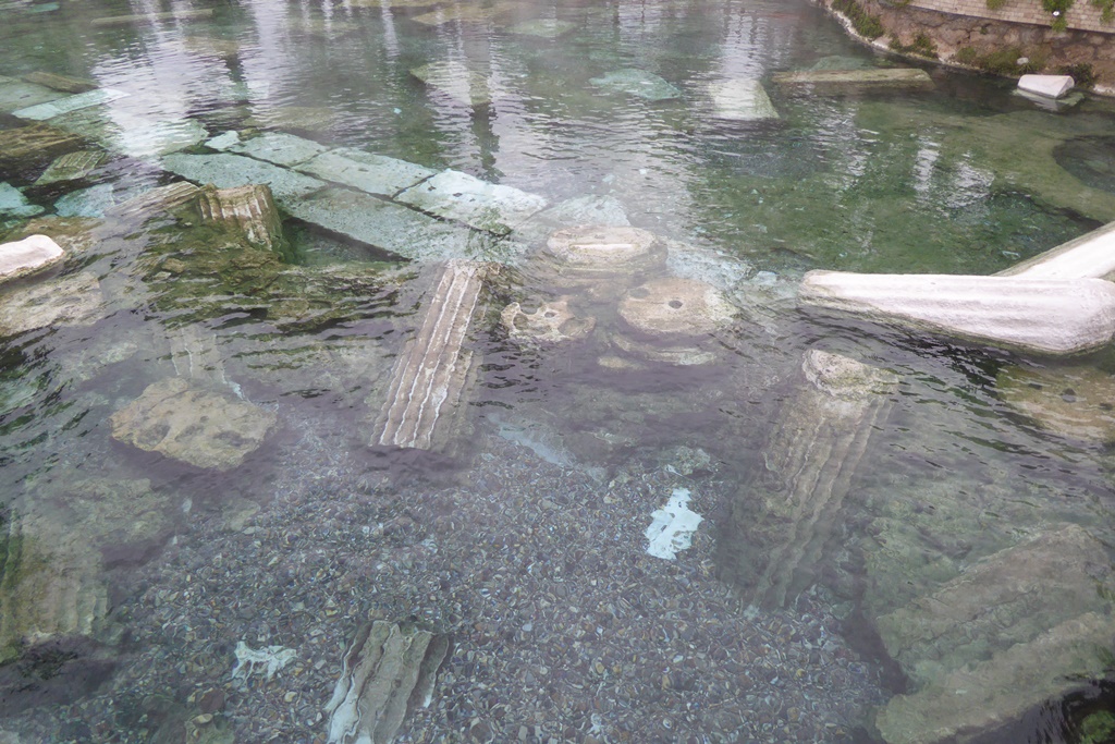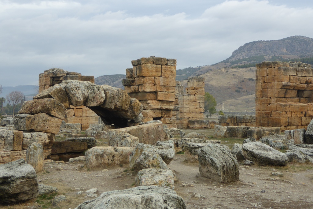 ヒエラポリスはパムッカレの石灰華段丘の上にあるローマ時代の遺跡だ。