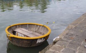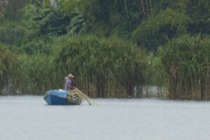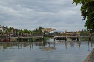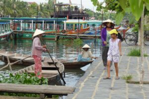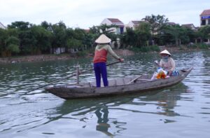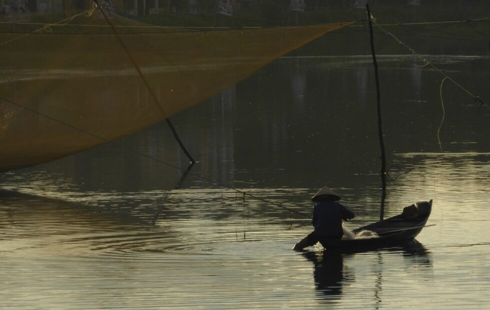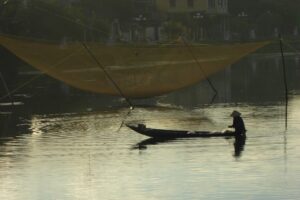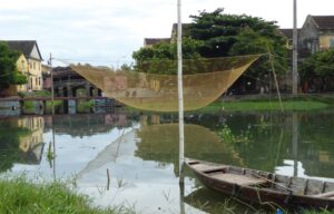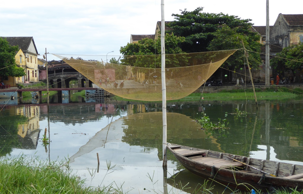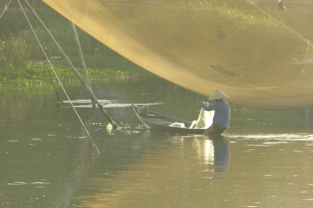 ホイアンの町を流れるトゥボン川には漁師の姿もあった。