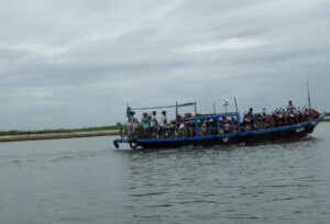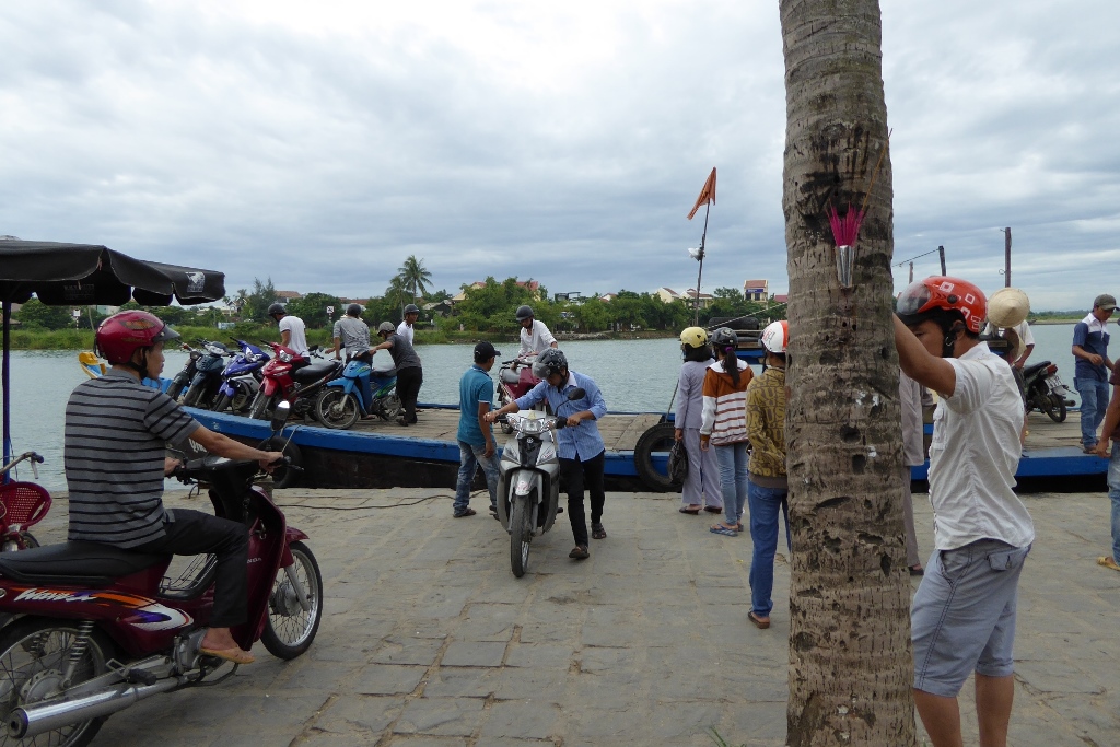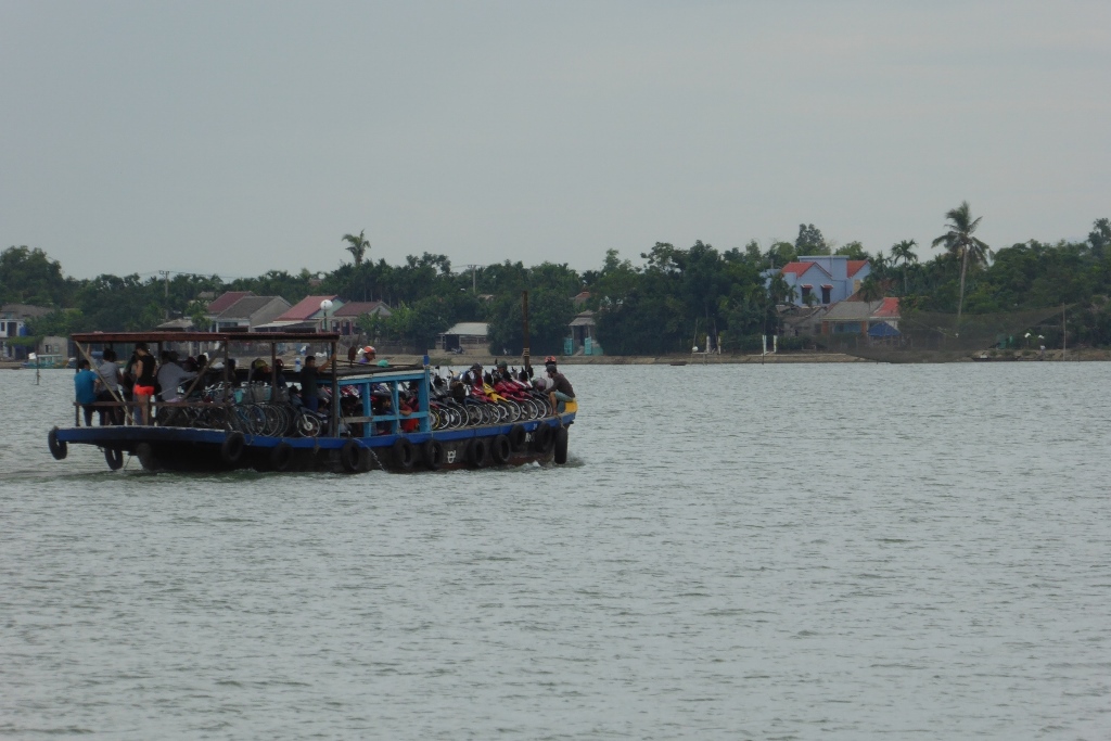 たくさんのバイクを積んだ渡し船が運行されていた。